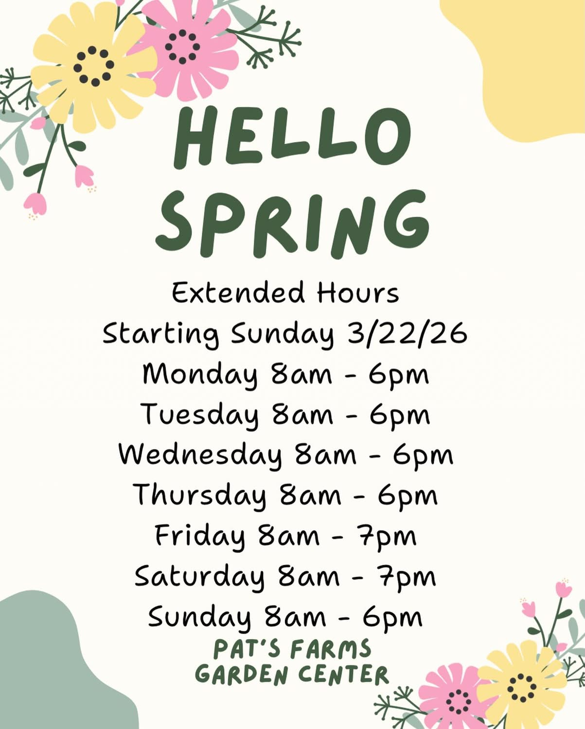 Welcome to Pat's Farms Garden Center! We are located next to Pat's Farms Supermarket and have been serving the community for over 40 years, our garden center just opened in 2022. We aim to provide the best quality plants at great prices. We have a great selection of Annuals, Perennials, Tropicals, Houseplants, Vegetables, Herbs, Trees and Shrubs. We carry all your gardening needs from fertilizer, soil, pots, gardening tools, and more. We have a Floral Section where you can choose from our ready-made bouquets and flower arrangements or create your own custom design. We sell Seasonal Decor, Home Goods, and Great Gift Items all year round.